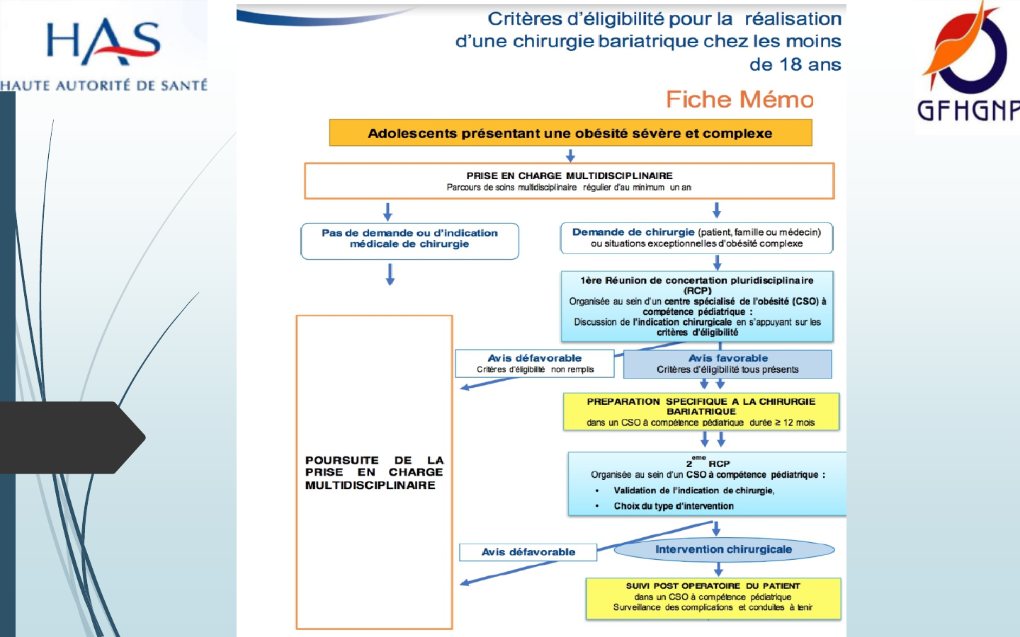 – Préparation multidisciplinaire à la chirurgie par une équipe spécialisée pendant au moins